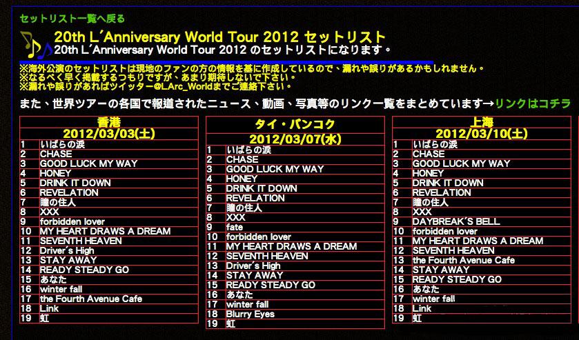 L'Arc-en-Ciel「20th L'Anniversary Live」2011年5月29日 味の素スタジアム セットリスト